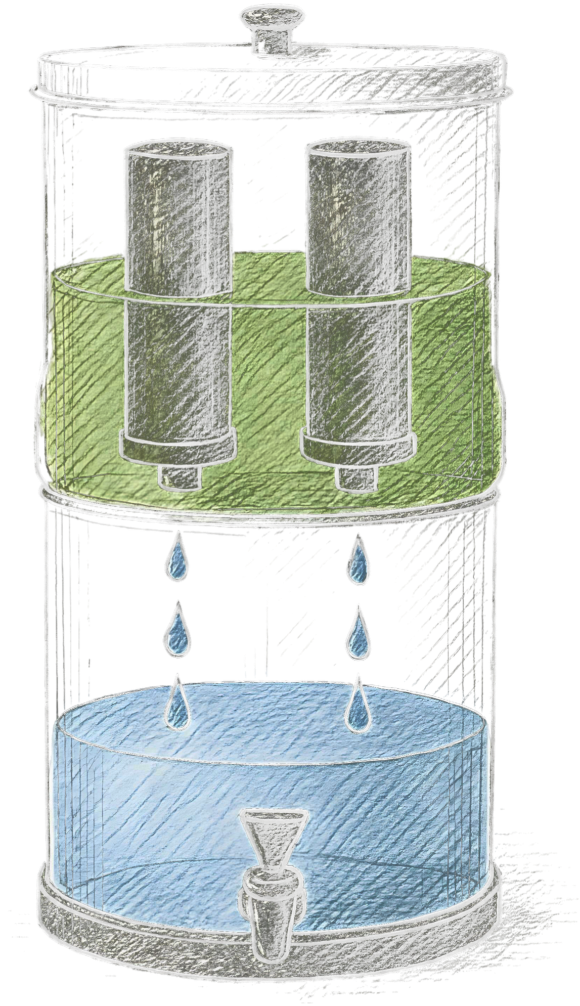 Un filtre à gravité purifie l’eau grâce à un principe simple :